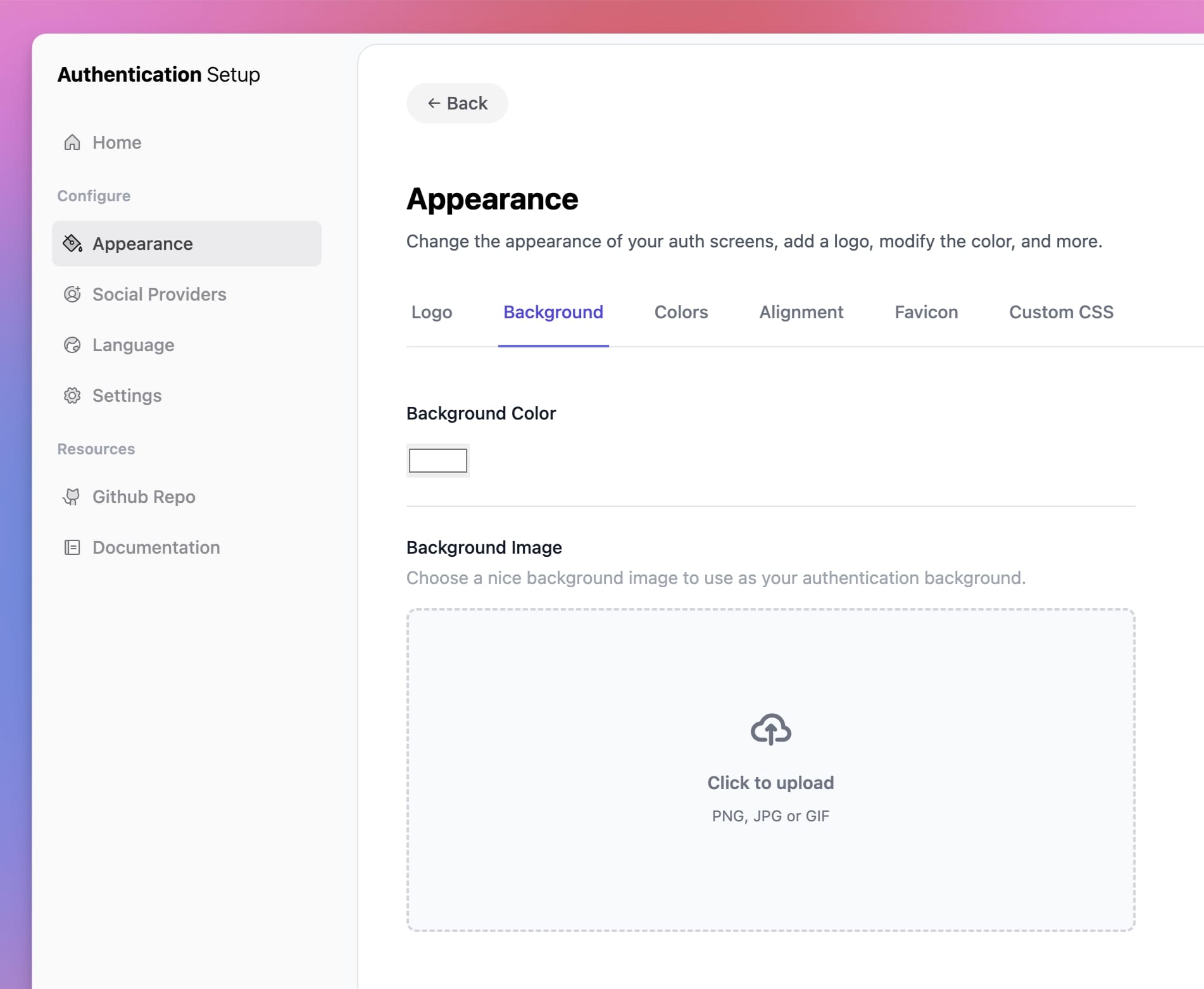 Update your authentication pages with your colors and logo to perfectly reflect your brand identity.